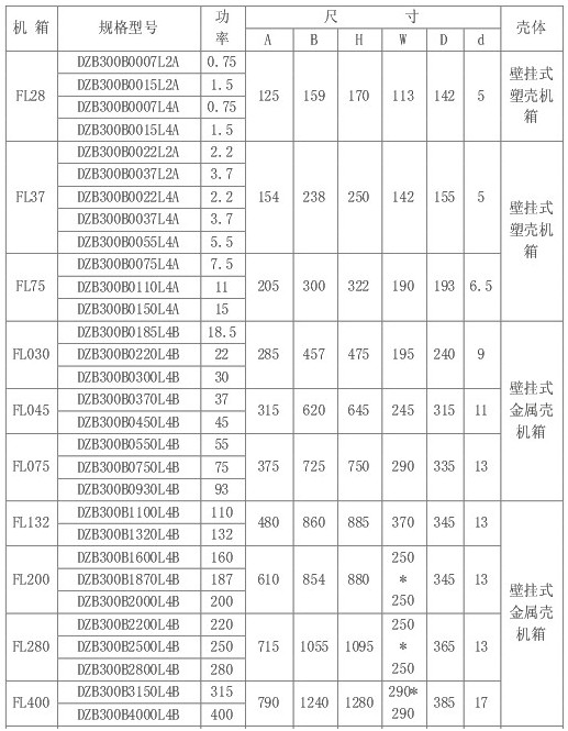额定功率(kW) | 0.5 | 0.75 | 1.5 | 2.2 | 3.7 | 5.5 | 7.5 | 11 | 15 | 18.5 | 22 | 30 | 37 | |