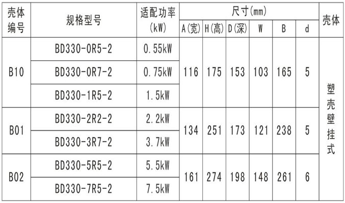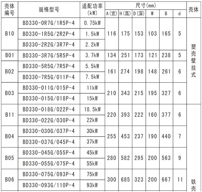 BD330-3R7G/5R5P-4 | 3.7/5.5 | 10.5/14.6 | 8.5//13 | 3.7/5.5 |